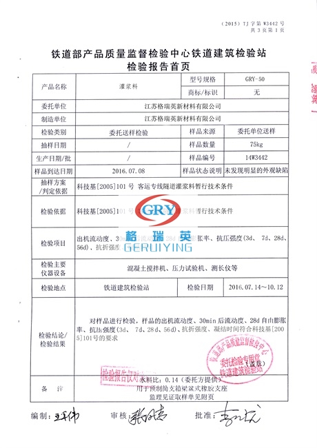 此文關(guān)鍵詞:灌漿料檢驗(yàn)報(bào)告,格瑞英檢驗(yàn)報(bào)告