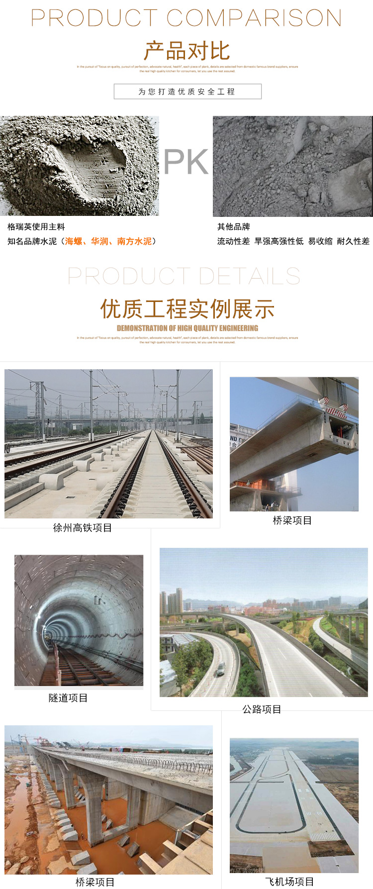 早強高強澆注后1-3天強度高20-50Mpa以上,縮短工期。