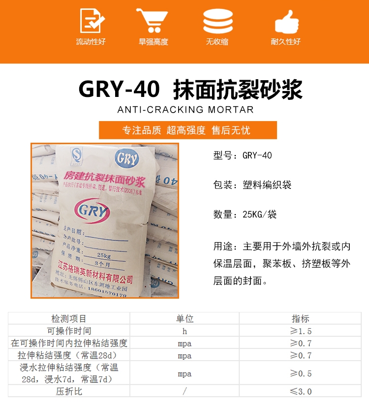4)抗裂砂漿在儲存過程中,應(yīng)存放在干燥通風處,避免受潮。